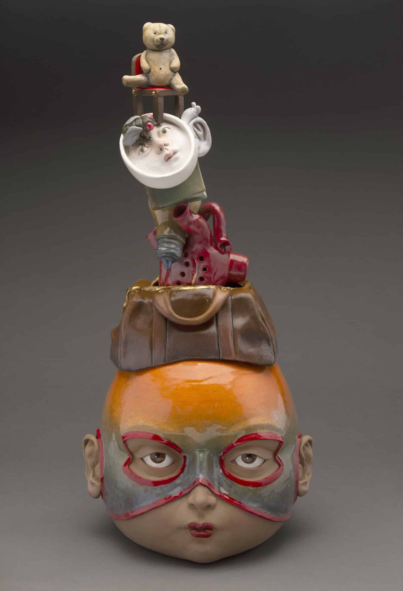 A Folding Chair is inspired by Shirley Chisholm’s quote, “If they don’t give you a seat at the table, bring a folding chair.” Chisholm encouraged others not to wait for an invitation but to pull up a chair with all they bring to the table and make their own space in the conversation. With A Folding Chair, I use a variety of symbols to share my experiences as a woman of color, immigrant, Latina, and artist living in the southeast of the United States. I have faced challenges in being heard, seen, included, and recognized in different settings, from casual social gatherings to workspaces. It is particularly frustrating for me, as I am introverted and self-conscious about communicating in another language due to my dyslexia. However, I have valuable perspectives to offer, shaped by my background and life journey. Despite being different, I proudly wear a luchador mask (fighter mask) and carry my personal history – childhood, beliefs, education, heritage, and values – ready to be shared once I open my folding chair and join the conversation at the table.