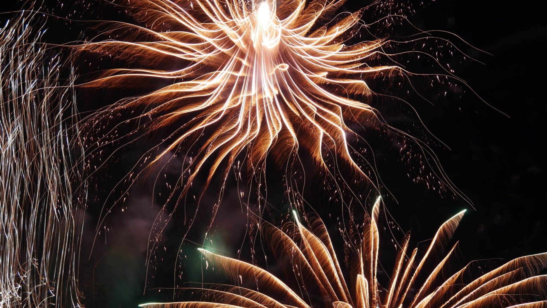 Petals of light unfurl in the darkness, fleeting flowers stitched into the sky.