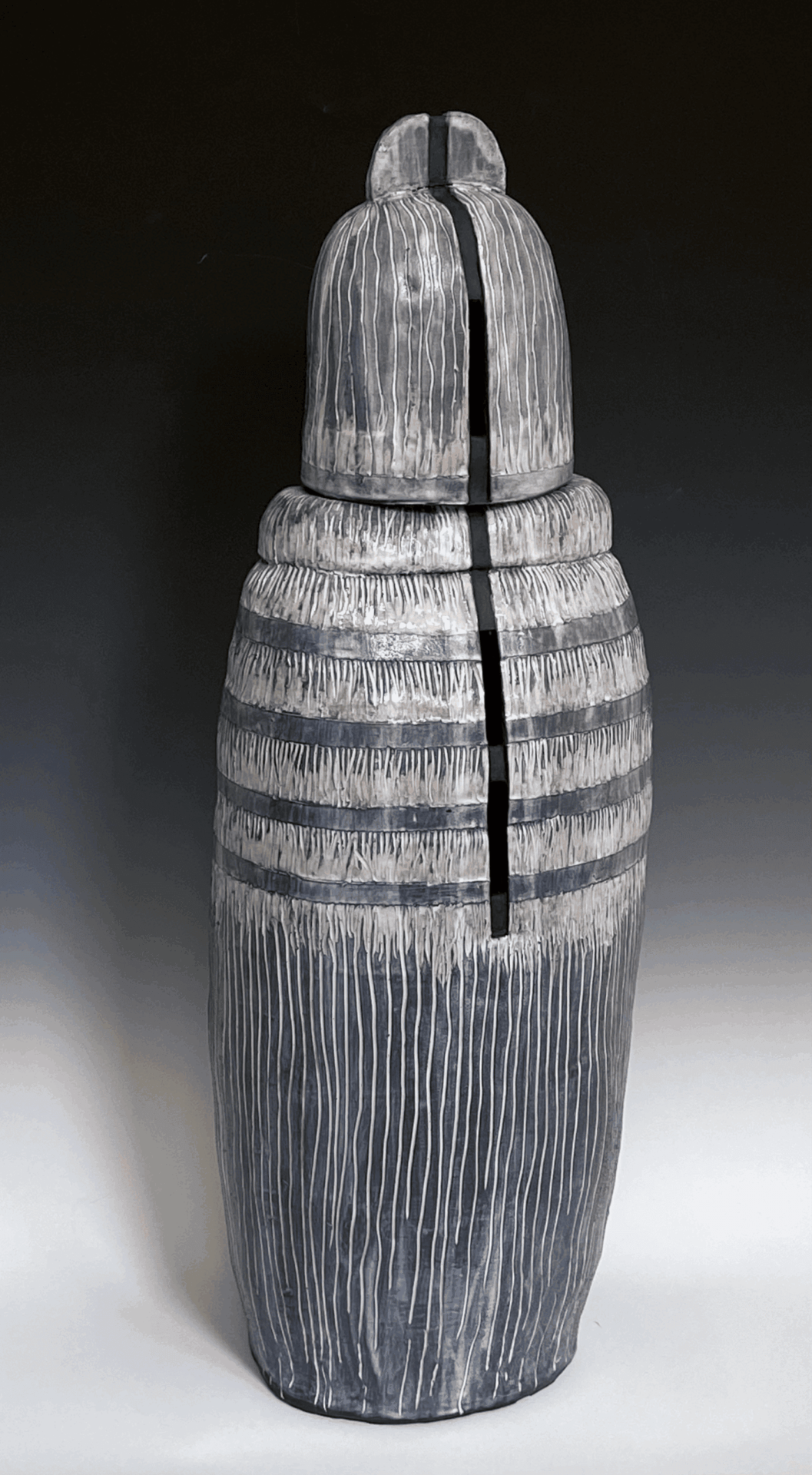 I am drawn to making pieces that evoke guardianship, and protection. Gatekeeper is a stylized depiction of a watchman or guardian. However, the slits also remind the viewer that there could be secrets within.